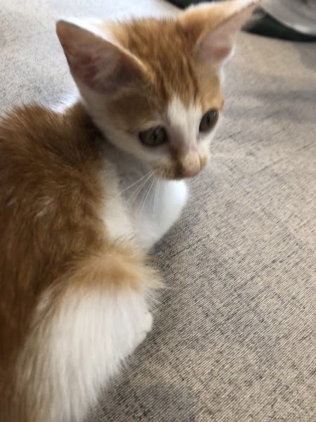 | 特徴(性格など) | 茶白の男の子。 保護時はガリガリでしたが、良く食べてふっくらしてきました。 甘えん坊で遊び好きで人が好きです。 保護時からとても人懐っこい子です。 ワクチン、血液検査は済み。エイズと白血病マイナス。 |