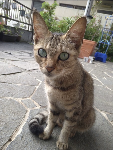 | 特徴(性格など) | 10/27不妊手術を受ける予定です。 薄茶、黒、白い毛に、グリーンの瞳をもったきれいな顔立ちをしたおんなのこです。 人懐こく、ひとがいると寄ってくきます。 撫でてもらうのがだいすきです。 |