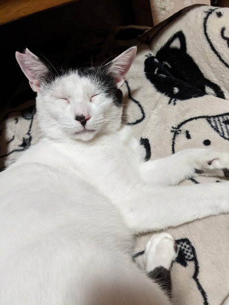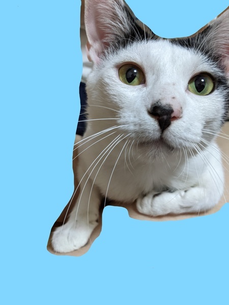 | 特徴(性格など) | 白と黒の柄でかぎしっぽです。 野良時代に十分な餌が得られなかったのか、少し体が小さいですが、今は食欲旺盛でとても元気な猫ちゃんです。 お腹が減ったり、甘えたいときは鳴きながらすりすりしてくるのがとてもかわいい猫ちゃんです! |
