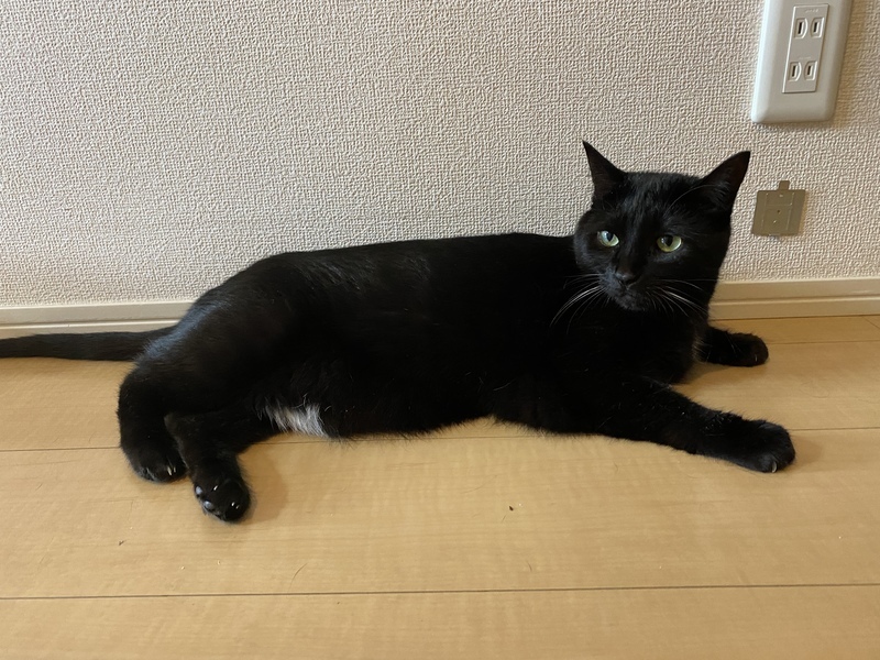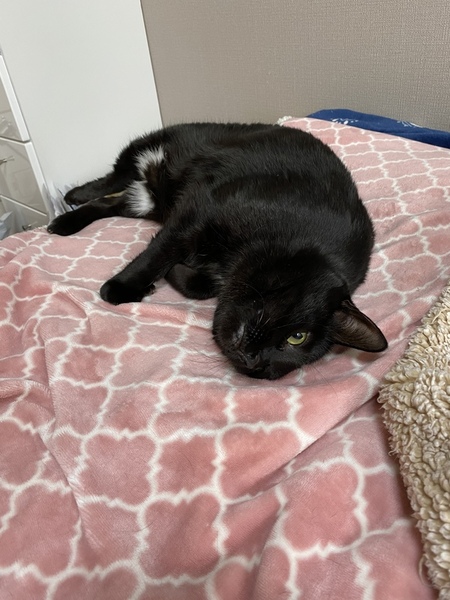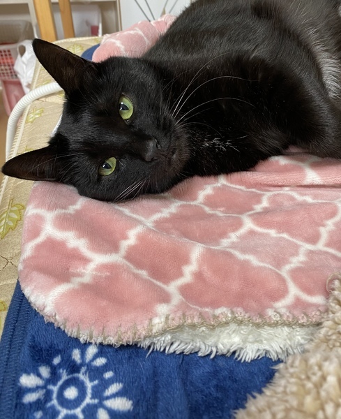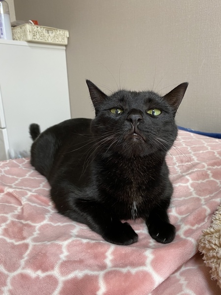 | 特徴(性格など) | エキゾチックなお顔が印象的で、ツヤのある綺麗な黒毛の女の子ですよ。 エンジェルマークは白パンツ。 お気に入りの毛布にフミフミをよくします。 警戒心はありますが、おとなしく 抱っこ出来ます。 慣れると沢山遊ぶ活発な猫ちゃんです |