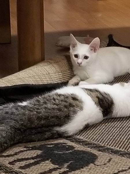 | 特徴(性格など) | 人懐っこい甘えん坊です。 真っ白でピンクの肉球です。 |