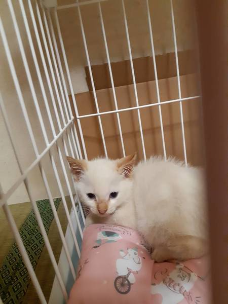 | 特徴(性格など) | お耳としっぽが薄っすらと茶色です しっぽはボブテイル風なカギしっぽでそこがチャームポイントです エイズ白血病検査ともに陰性 レボリューション済 駆虫済 健康です とても活発でみんなと遊びたがります。先住猫ちゃんのいるご家庭が希望です。 |