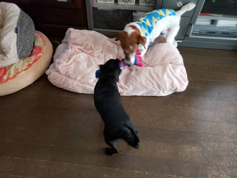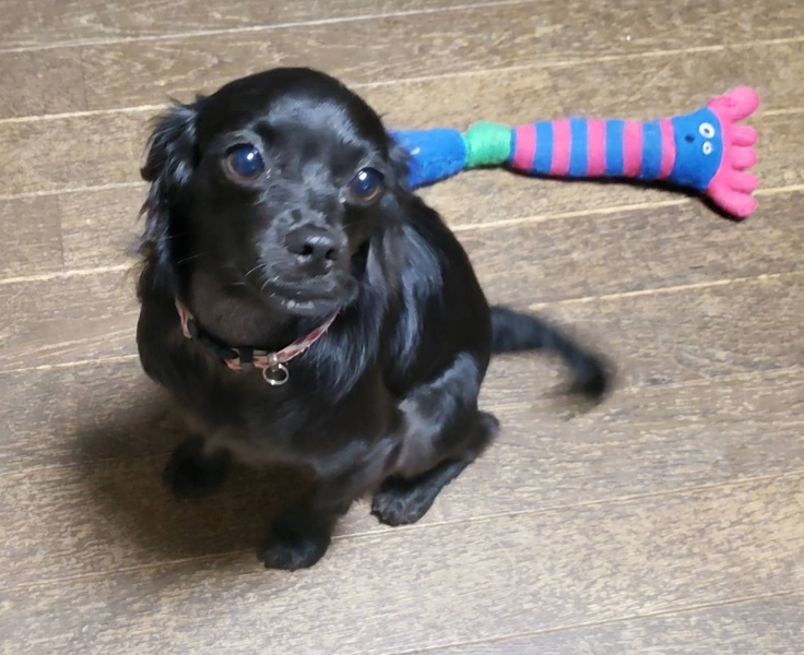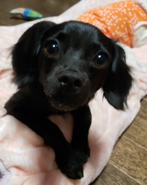 | 特徴(性格など) | 名前:モリー 推定1歳です。 体重3.8キロ 毛色:黒 チワワ・ダックス・トイプードルミックスになります。 若いこともあり、かなりのやんちゃ姫です。吠え癖があり、吠え声はかなり大きいです。興奮すると噛む場合があります。家具や落ちているものなど齧っていたずらする場合があります。抱っこ好きの超甘えん坊でやきもち焼きです。単独遊びも上手ですが他犬を遊びに誘ったりします。 食欲旺盛でなんでも食べます。お散歩は大好きでガンガン歩きます。おしっこはトイレシーツで出来ますがたまに粗相します。ウンチの時は動くのでほぼ床の上でしています。 留守番と就寝時はケージですが現在ほとんど留守番のない生活を送っています。 アカラスで体毛が禿げ禿げでしたがほぼ完治に近づき首の前側が生えていませんが他はフサフサになりました。現在10日に1回ほどシャンプーしています。継続して治療していただける方を募集しています。 5種混合ワクチン 不妊手術 フィラリア検査:陰性 マイクロチップ装着 血液検査:異常なし 検便:陰性(駆虫薬投薬済) フードはなんでも食べます。 現在の健康状態は良好です。 |