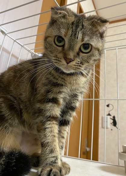 | 特徴(性格など) | 名前:小麦 年齢:1歳(獣医みたて) 毛色:ブラウンタビー スコティッシュフォールドの折れ耳になります。 とっても可愛い顔をしていますが、少しシャイでビビりなところがあります。が、全然抱っこも触ることも出来るとってもいい子ですよ。慣れるまで時間をかけて下さるかたを希望します。 スコティッシュフォールドは遺伝性骨軟骨異形成という遺伝性疾患を持っている子がいます。将来遺伝性疾患が出るかどうかはわかりません。ご応募される方はご理解の上覚悟を持ってのご応募をお願いします。病気になったからと猫には罪はありません。 健康状態は良好です。 不妊手術済 3種混合ワクチン済 猫エイズ・白血病検査:陰性 検便:陰性 マイクロチップ装着 血液検査:異常なし 食欲旺盛で元気です。 |