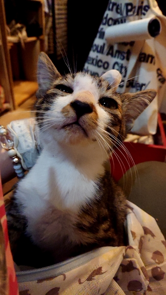 | 里親募集する理由 | いつも餌やりをしている場所で、猫達はすべて手術済みばかりの中に一匹だけ子猫を見かけると、連絡をもらいました。 ホームレスの男性に時々ご飯を分けてもらっているらしいと、子猫だけで、親猫の姿は無く、保護、去勢手術も済みました。 |