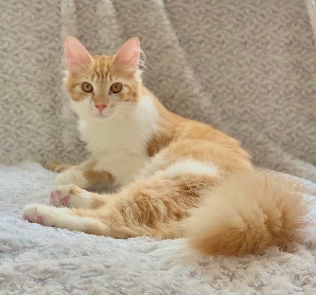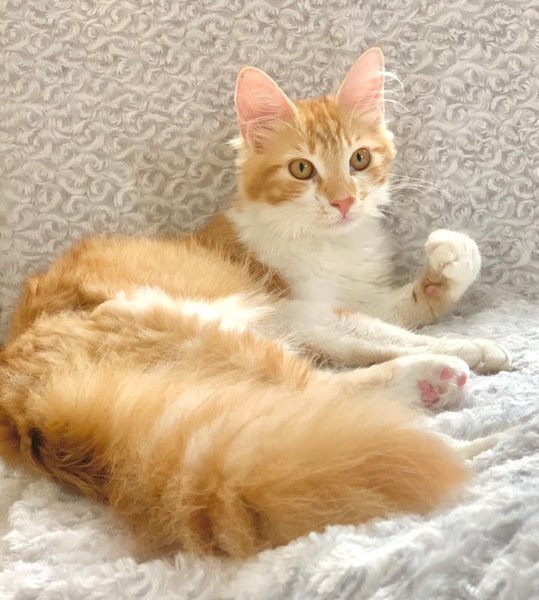 | 特徴(性格など) | 【仮名】ジョーちゃん 【性格】フワッフワ長毛のジョーちゃん♪ シッポなんかハタキのようです(笑) 今は夏毛仕様でちょっとすっきりしてますが 冬毛になると・・・ムフフですね♪ そして何よりデカイッ! デカイんですよ!( ゚Д゚)! 月齢を錯覚するほどのデカさです! メインクーンのようなビッグにゃんこに なるコト間違いなしですよ! そしてとっても甘えッコで社交的♪ お客様の接待もバッチリです(笑) フミフミも大好きなのですが この体重でお腹に乗ってくるので 相手をするのは中々の重労働です(笑) 最近は同室で一緒に過ごしている 千代丸くんと千代姫ちゃんの面倒をみているので 一緒にお迎え頂ける里親様を希望します♪ まさかの3ピキ一緒なら大歓迎!! ※1匹譲渡不可 |
