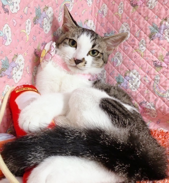 | 特徴(性格など) | 12月26日(日)12:00~16:00(最終申込15:30) ねこざんまい譲渡会【東日本橋会場】に参加予定です! 会場の案内はこちら♪ https://ameblo.jp/neko3mai/entry-12716231830.html ※猫ちゃんとのお見合いは譲渡会となります。 譲渡会ご来場につきまして、事前予約は不要です。 どうぞご家族みなさまでご来場下さい♪ ★★★ご来場前に必ずご確認下さい★★★ 《里親様へお願いはこちら》 http://www.neko3mai.com/condition/condition.html 《家族募集中猫ちゃん一覧はこちら》 http://www.neko3mai.com/entrycats/entrycats.html ◆ 名 前 ◆ みぃちゃん ◆ 年 齢 ◆ 7ヶ月半 ◆ 性 別 ◆ 女の子 ◆性格は?◆ お鼻に模様がチャームポイントの可愛い女の子みぃちゃん 一見大人しそうだけど、とっても活発で、おてんばな女の子です。 兄弟猫の男の子達とも、一緒になって全力で追いかけっこして、部屋中を飛び回っています。 最初は環境の変化で少し怯えていましたが、今は慣れてきてペロペロなめてくれ愛情表現をしてくれます♡ 最初は怯えて硬直しますが、抱っこを毎日してたら、安心したようでゴロゴロ鳴らします。 姉妹の『のんちゃん』と一緒に迎えて頂けたら嬉しいです。 また、家庭内の事故や誤飲防止のため、きちんと整理整頓された清潔な空間での生活を希望します。 脱走や危険防止対策は必須ですので、ご理解・ご協力をお願い致します。 間取り図や玄関やベランダなどの写真をお持ちいただくと、対策の具体的なアドバイスがしやすいかと思います。 フードやキャリーなど、一部の準備品を指定させていただいております。 ペットではなく、共に暮す家族の一員としてお迎えくださるお家を希望しておりますので、お世話してくださるご家族の皆さん、またはご夫婦ご一緒に会いにいらしてくださいね! 先住犬猫や小さなお子様がいらっしゃるご家庭への譲渡は、ご希望に添えない場合がございます。 脱走や危険防止対策をしていただけないご家庭への譲渡は、大変申し訳ございませんがご遠慮させていただいております。 |