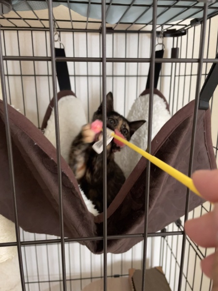 | 特徴(性格など) | 保護したての時にマーモセットに似ているとのことで、「まーもちゃん」と呼んでいます✨ 甘えん坊でやんちゃ。 少しビビリだけど好奇心旺盛です。 ひとりでも勝手に遊ぶほど、たくさん遊びます! サビ猫さん独特の柄、鍵しっぽがとても可愛いです。 健康状態良好ですが左眼の炎症のため点眼治療中。 良くなってきています。 ワクチンは1回目接種済、 2回目は9月末接種予定です。 エイズ陰性です。 |