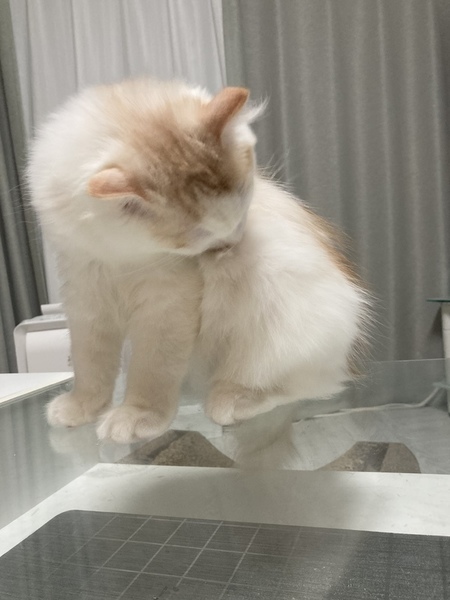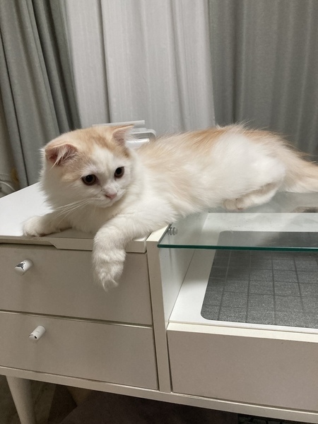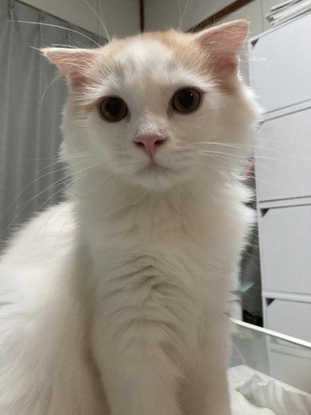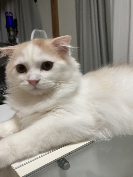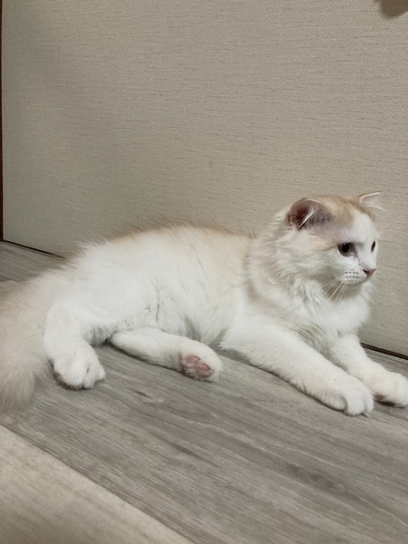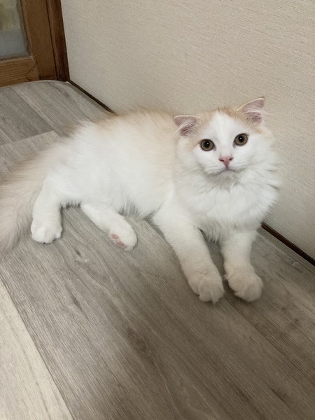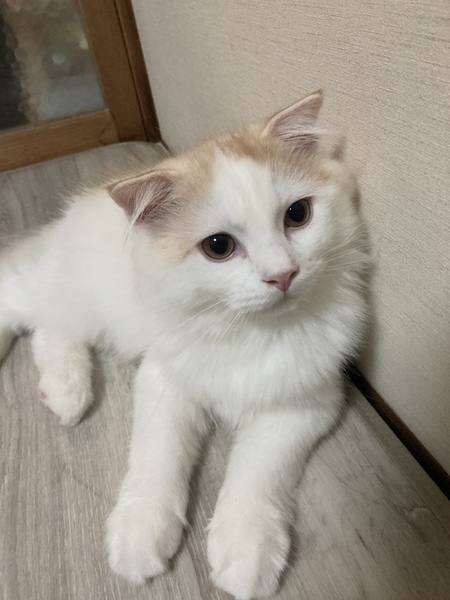 | 特徴(性格など) | スコテッシュフォールド長毛 2021年5月23日産まれ、 もうすぐ4ヶ月のオスの子猫です。 とても人懐っこく、甘えん坊で 撫でるととても小さな声で鳴いて ゴロゴロと喉を鳴らして、 手をいっぱい広げてフミフミします。 目が合うと、撫でてと走ってきます。 人が大好きですが、 抱っこされるのは あまり好きではありません。 でも膝に乗せると座って、 顎を腕にのせて ゴロゴロと甘えてきます。 キャットタワーからお外を見たり おもちゃで遊ぶ事が大好きです。 食欲もあり、 ドライフードも沢山食べ お水も良くのみ、健康です。 ワクチンは一回だけ済んでおります。 検便検査も健康チェックも 異常はありませんでした。 トイレもきちんと覚えています。 |