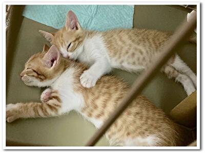 | 特徴(性格など) | 兄弟の色が薄い方。 甘えん坊で、可愛い声で鳴きながらスリスリしに来てくれます♡ 慎重派ですが、慣れると元気いっぱい遊びます♪ じゃれあいが好きで、兄弟喧嘩はいつも勝ちます('ω') |