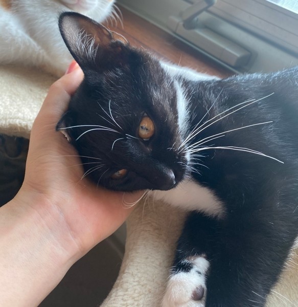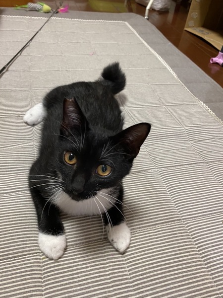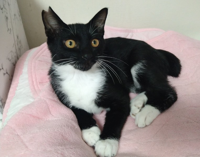 | 特徴(性格など) | 控えめで慎重な性格ですが、とても甘えん坊です。 撫で撫で大好きゴロゴロベタベタな元気っ子。 お顔はマスクで体はタキシード、尻尾はグルっと短いピコピコ尻尾です。 小柄で愛嬌のあるクリクリお目目の可愛い子です。 |