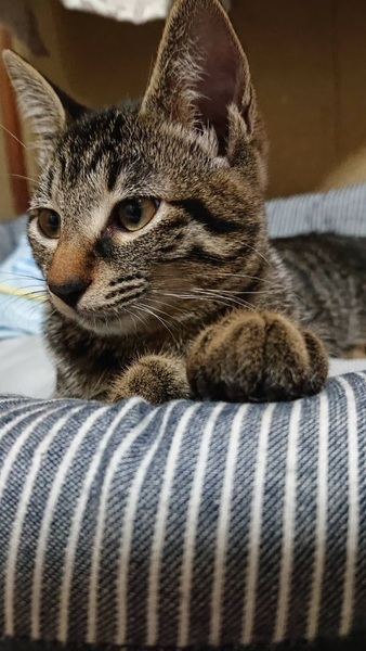 | 里親募集する理由 | 妊娠中の母ネコを保護しました。子猫5匹(全部女の子)が産まれ、4匹は里親様が見つかり、育てて頂いてます。 | ||