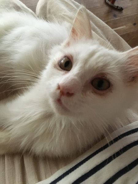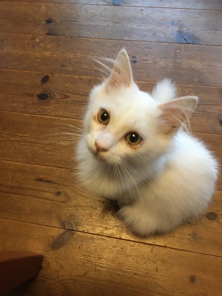 | 特徴(性格など) | 長毛白猫です。両前足内側に茶色の毛があります。フードもしっかり食べ、毎日元気に過ごしています。抱っこもさせてくれますし、膝に乗ってきて眠ることもしばしばです。 |