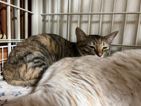 | 特徴(性格など) | ▼△▼譲渡会参加情報▼△▼ 3/27(日) 12:00~16:00 島忠ホームズ仙川店~ねこちゃん譲渡会~ https://satoya-boshu.net/event/detail.php?@DB_ID@=3207 ▼△▼△▼△▼△▼△▼△▼ 沖縄から来た子猫★きじとらローズ 推定生年月:2021年4月 毛色:薄目のキジトラと麦わらが混じったようなカラー 眼の色:黄色 しっぽ:まっすぐ長い 沖縄からはるばるやってきた子猫です。 最初は少しやせ気味でしたが、毎日ごはんをたくさん食べて ふっくら艶やかな毛並みになってきました♪ まだ人間が怖いようで人慣れ修行中ですが、時間と共に慣れてきてくれるかと思います。 トイレや爪とぎは所定の場所でできるお利口さんです。 一緒に写真に写っている三毛猫のアリスとは姉妹で、とても仲良しでしたが先に家族が見つかりました♪ローズにも家族が見つかりますように! ☆不妊去勢手術済 ☆三種混合ワクチン2回済 ☆ノミダニ取り済 ☆駆虫済 ☆マイクロチップ挿入済 ☆ウイルス検査 エイズ 陰性、白血病 陰性 |