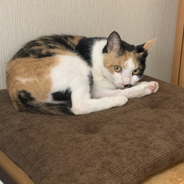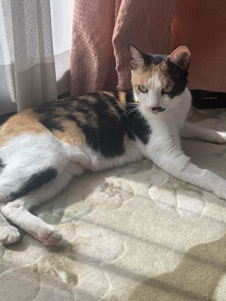 | 特徴(性格など) | 食いしん坊の三毛猫の女の子です♪ 抱っこはまだ苦手ですが少しならできます。 人馴れOK!慣れるとスリゴロ甘えてくれます。 できれば一頭飼育が向いています。 |