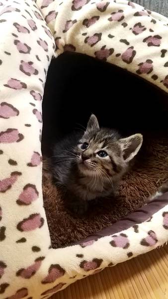 | 特徴(性格など) | 毛深いふわふわもこもこのキジトラ2匹オスの兄弟です。 生後1週間未満で保健所から引き取られ人工哺乳で育っています。 人が大好きでずっと人と一緒に遊びたがります。 |