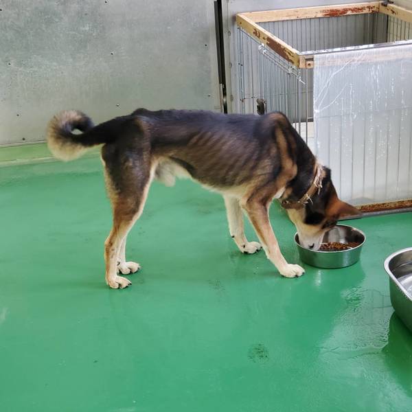 | 特徴(性格など) | お声掛け無く期限延長となっております、あまり若くはないようで見た目の推定10歳〜位?と思われる可愛い男の子ฅ•ﻌ•ฅ 大きめの中型雑種でガリガリに痩せています。アバラ、腰骨がはっきりと浮き出ています( ; ; )適正体重は15キロ位かなと思われる子ですが、痩せ過ぎの現在の推定体重は10キロ前後位でしょうか( ; ; ) 毛はパサパサしていて栄養不良な感じですし可哀想に汚れていてブラッシングやシャンプー、口腔ケアなどをしてもらえていなかった様子( ; ; )歯石もそれなりについています。 綺麗にブラッシングやシャンプーなどケアをしたらもっと美犬君になる事でしょう(^^) お座りやマテなど教わってきていないのか、言ってもキョトン?としていて何とも言えない可愛いお顔です♡ 優しい職員さん方が怖くないよ、今度こそは幸せになれます様にと毎日触れ合いながら、一生懸命にお世話してくださっています。 尻尾を振って静かに寄ってきてくれます。 最近ではお腹を見せたり、撫でて〜と甘えたりするようになったとの事ฅ•ﻌ•ฅ 無理もありませんが急に触ったり、わしゃわしゃぐりぐりと撫でると驚いて噛もうとしたので目が見えにくくなっていたり、耳が聞こえづらくなっているのかもしれません(;_;) ビックリさせたら可哀想なのでゆっくり声掛けしています、手からも食べてくれますし無駄吠えもせず、殆どケージの中に入って寝て過ごしています。大人しく穏やかですが収容されていた他犬(男の子)には威嚇していました(^_^;)相性もあるのでしょうが男の子は嫌いなのかもです。 子供パワーいっぱいの若い子より、落ち着いた子と暮らしていきたい方にピッタリな、シニア犬ならではの魅力があるワンちゃんだと思いますฅ•ﻌ•ฅ 職員さんが連れ出してくれるお散歩は嬉しそう♪楽しそうでしっかり片足を上げて排尿しています(^^)痩せていますしリードの引きの強さは問題無く制御出来ます。 でも急な走り出しや後退りからの首輪抜け・胴輪抜けなども想定し、どんな子であっても油断は禁物で脱走、逃走には充分な配慮と注意が必要ですm(_ _)m この子のペースや体力をみながら寄り添う時間を取ることの出来るご家庭を希望しておりますm(_ _)m ⭐️必ず室内飼育で、譲渡後速やかに病院受診、健康診断、(血液検査、尿便検査、ノミダニ・フィラリア予防やシャンプー等)混合ワクチン接種をする事が可能な、なるべくお留守番が少ない、沢山優しくスキンシップやコミュニケーションで触れ合っていただけるご家庭。 ⭐️狂犬病予防接種、フィラリア予防や混合ワクチン実績の有無は不明です。 フィラリア陽性の可能性も有り得る事となります(>_<) ⭐️室内でのトイレトレーニングも1からとなります。 未去勢で片足を上げて排尿します。 何かと手がかかり大変ですが(マナーベルトやL字型のトイレ、ペットシートを用意など)覚悟と理解で受け入れて下さる方。 ⭐️出来れば中型〜大型犬の飼育経験があり愛情を持って接することが出来る方、この子の体力を見つつ朝晩のお散歩や運動、コミュニケーションに充分時間をあてられる方、何卒宜しくお願い致します。 ⭐️(今のところ殆ど吠えませんが)吠えても大丈夫なご家庭。 以上の点を踏まえ、この子の置かれている状況、傷ついているであろう心をご理解の上、全て受け入れ、寄り添いながら愛情を注いでくださるご家庭で可愛がっていただきたいと願っております。 保健所収容された全ての子達は身勝手な人間による被害者であり、何も悪くありません( ; ; ) 家族の一員として生涯大切にしてくださる優しいご家庭とのご縁が結ばれ、お散歩から帰っても嫌な檻の中では無い、家族の皆さんとずっと一緒に居られるお家、これからの寒さも安心して快適に過ごせるお家が見つかります様に。 首輪をしていましたし今まで人間を信じ、人間と共に生きてきた筈です。 1日も早く温かな愛情を目一杯注がれながら、元気に幸せに生きてほしいです。人間より遙かに短い生涯です。 冷たく硬いコンクリートの上、狭い檻の中でひたすら優しい素敵な里親様を待ち続けています。 悲しい事にこの世の中、人間に飼われないと犬は生きていく事が出来ません。 捨てる飼い主、探さない飼い主、医療にかけない飼い主、虐待する飼い主…飼い主を選ぶ事も出来ません。 家族を必要としています。 最期は大切な家族の一員として、この子の全てを受け入れて下さる、優しい素敵な里親様の元で穏やかな余生を過ごしてほしいです。残るこの子の犬生を生涯大切に可愛がって下さる優しい素敵な里親様、どうかお願い致しますm(_ _)m もうこれ以上悲しく辛い目に遭わせたくありません。 本当の愛情、温もりを知ってほしい、辛かった分、寂しかった分、今後はのびのびと幸せいっぱいに愛し愛されて、生きてほしいと願っております。 家族の一員に迎え、愛情溢れるご家庭で一緒に暮らして頂けませんか。 何卒宜しくお願い致します(๑•ᴗ•