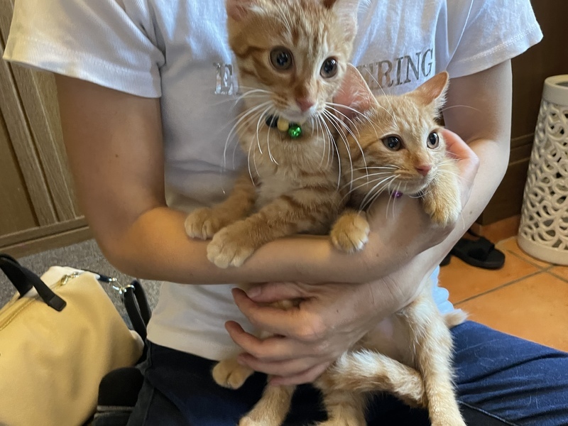 | 特徴(性格など) | 珍しい茶トラの兄弟です 茶トラの女の子は1/200と言われています 保護時はかなり威嚇しておりましたが 今ではゴロニャンコになっています オスのロペ君の方がスリゴロです^_^ |