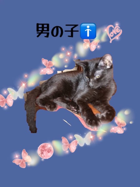 | 特徴(性格など) | 毛は真っ黒の黒猫くんです。 よく寝る子で一度寝ると 気が済むまでずっと寝てます? |