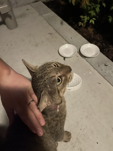 | 里親募集する理由 | 首に大怪我を負っているところを保護し、治療&去勢手術を済ませました。その際のウイルス検査でエイズ陽性でした。我が家には先住猫がいること、11月に引っ越しを控えており、現状では部屋の広さ等からお家に迎えいれてあげることが困難であることから、里親又は一時的にでも預かって頂ける方を探す運びとなりました。 | ||