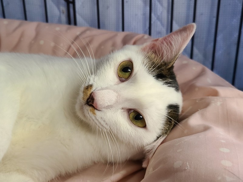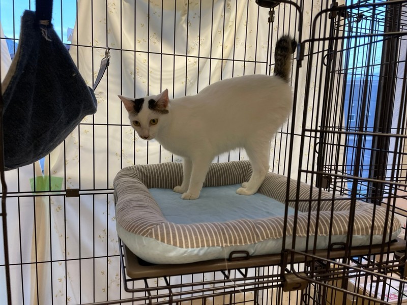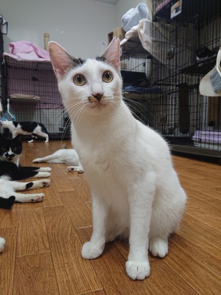 | 特徴(性格など) | 20201.6.8生まれ 毛色:キジ白 お鼻周りに模様のあるキジ白柄の女の子。 一緒に保護されたみつ豆の陰に隠れがちな、ちょっぴりシャイガール。 本当はたくさん遊びたいけど、遠慮しているのかな?! 遊びは遠慮がちだけど、ご飯を催促したり、他の子がちゅーるをもらっていると 自分にもちょーだいと催促するちゃっかりさん♪ ハンモックが好きで、手を伸ばしてお世話係の髪の毛をチョイチョイと、 かわいいアピールもしてくれます♡ |