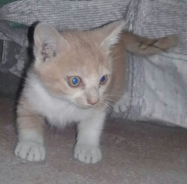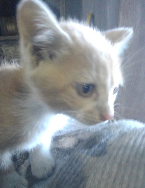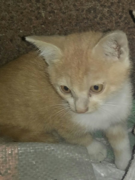 | 特徴(性格など) | チャトラで、前足の先と喉元が白毛で尻尾の長い子猫です | ||
