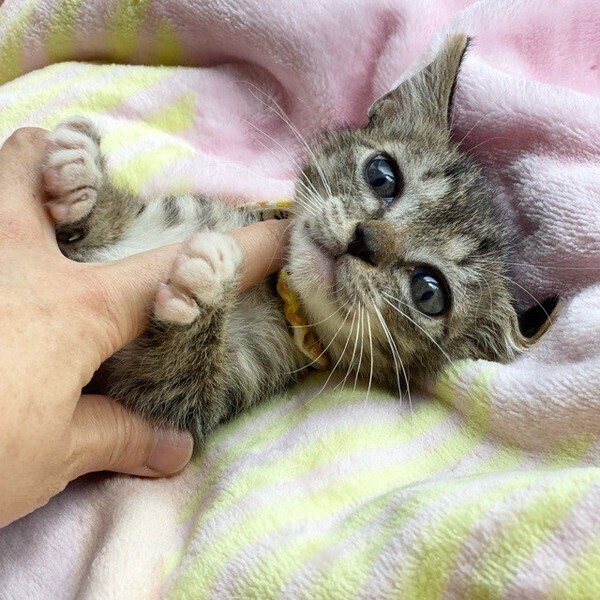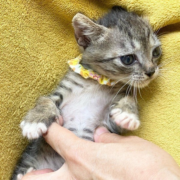 | 特徴(性格など) | 目をしっかり見てお喋りしてくれる「ホイミン」くん❤ 保護時も危険な状態だったにも関わらず声をかけるとお返事してくれました。 素直で真っすぐな性格ピカイチ✨な甘えん坊です。 現在、ドライフードを24時間の置き餌として栄養補給、水分補給のため一日3回パウチを与えています。 <推定誕生日:7月末ごろ> |