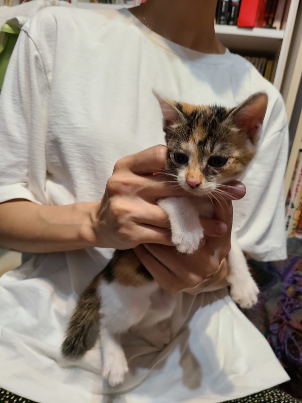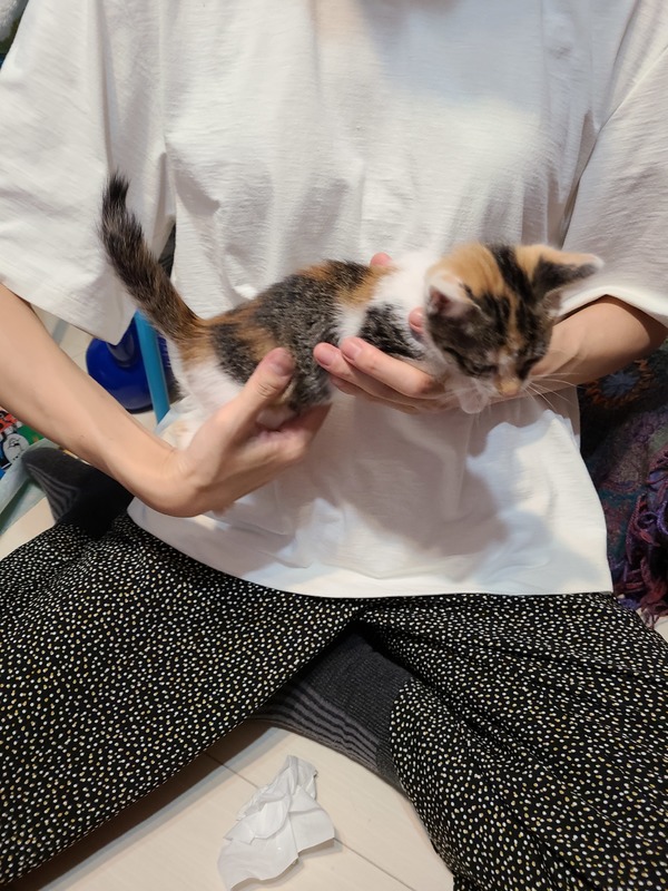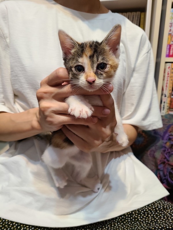 | 特徴(性格など) | 三毛猫子猫ちゃん、生後1ヶ月半くらいです! 今回この子と一緒に生まれたキジシロボーイも里親さん募集します! 2匹一緒にでもいいですし、ご家庭の事情に合わせてこの子だけでも構いません。 野良ちゃんママが産んだ5匹兄妹のうちの1匹でして、今は預かりボランティアさんの所にて兄妹一緒に生活しています。 子猫ですので、とにかく遊びたい!食べたい!ネンネしたい!と分かりやすい(笑)可愛いく愛おしい子です!! |