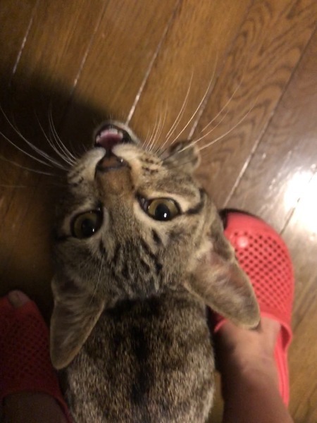 | 特徴(性格など) | 色柄▼キジトラ 性格▼おっとり、甘えん坊 好き▼一緒に保護されてるマサムネ、棒付きおもちゃ 苦手▼掃除機 ウイルス検査▼マイナス |