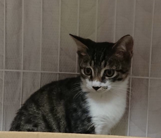 | 特徴(性格など) | 仮名:海(カイ)ちゃん キジ白の男の子です。短いですが鍵しっぽです。 猫ちゃんがたくさんいる場所で保護したので、預かりさんのおうちの猫にも興味津々です。 食欲旺盛で、トイレもできています。 とても元気でよく遊びます。 抱っこやナデナデ、人馴れしてからの譲渡になります。 初期医療:済み ウイルス検査:陰性 3種混合ワクチン:済み ノミ・ダニ駆除薬:済み 9月16日:1.65キロ ※検便検査は譲渡までに数回いたします。 一匹で保護したのですが、お外ではずっとママ猫や他の猫と一緒に過ごしていましたので、 先住猫さんがいるお家にもおすすめです。 |
