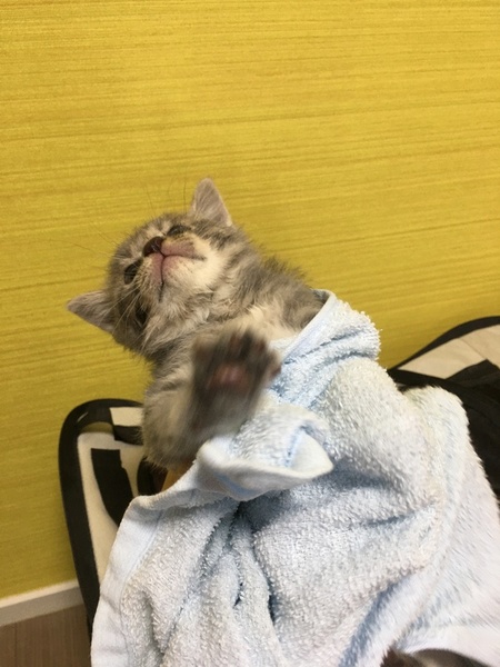 | 里親募集する理由 | 職場の駐車場に母親からはぐれて、一匹で鳴いていました。2日間様子を見ましたが、母猫が戻ってくる気配がないので保護しました。 今日保護したばかりなので病院もまだ行けていません。 チュールを元気よく食べていました。 哺乳瓶でミルクも少し飲みます。 もう歯が生えてます。 |