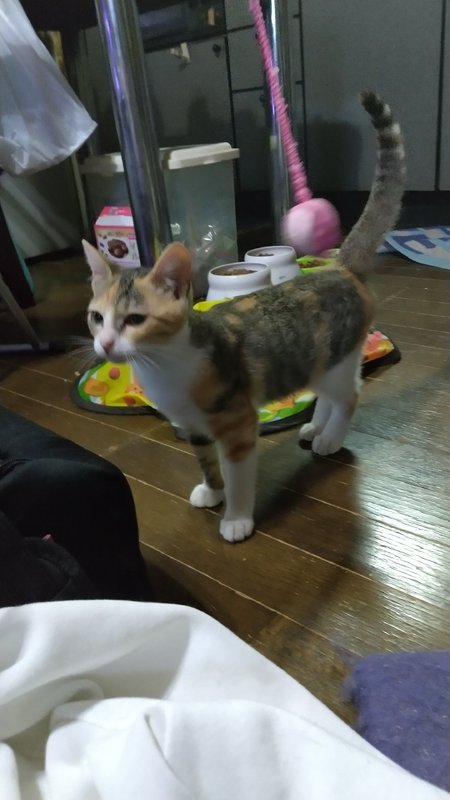 | 特徴(性格など) | 縞柄の三毛猫ちゃんです。 まだ怖がりさんで抱っこはできますが、まだ人馴れ修業中なので、気長に向き合ってくださる里親様お願いします。 |