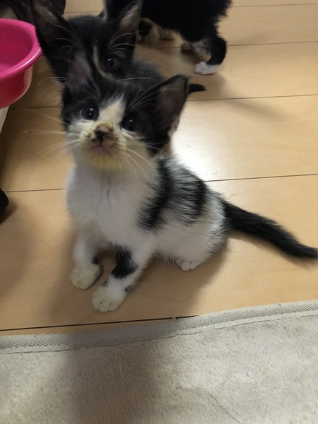 | 里親募集する理由 | 近所で4兄弟が一緒にいるところを保護しました。 先住猫がいるため、4匹を迎えるのが難しいので募集しました |