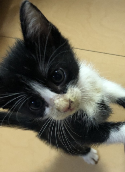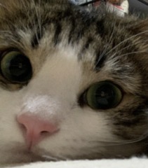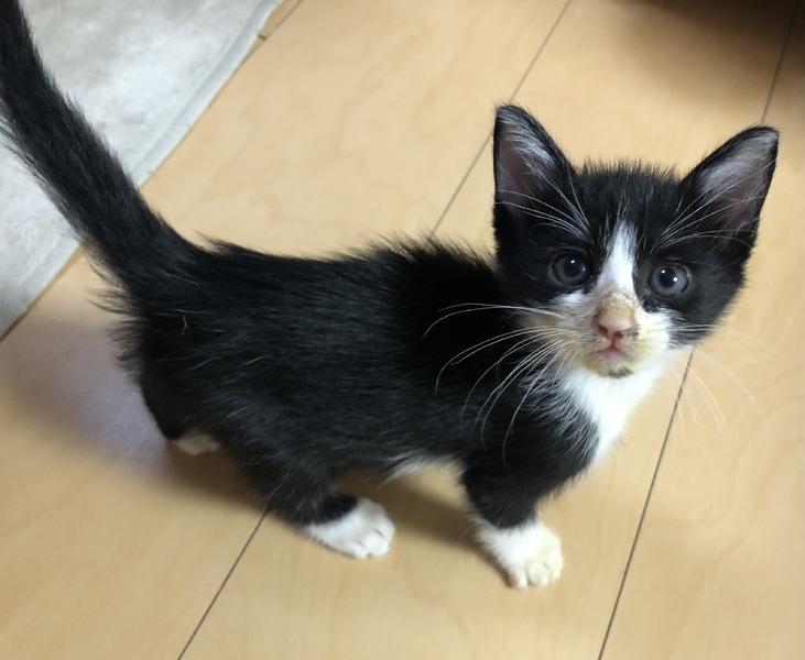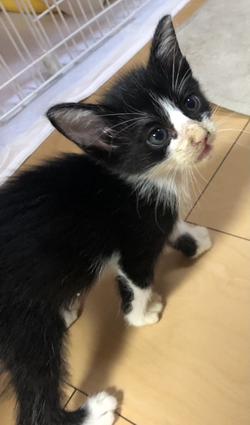 | 特徴(性格など) | アゴに丸い模様がある綺麗な顔のハチワレ猫ちゃんです。 毎日走り回り、とても元気です。 眠たくなると人の上に乗ってきて、そのまま寝てしまう姿も可愛いです^ ^ ボールやおもちゃで遊ぶのが大好きです。 |