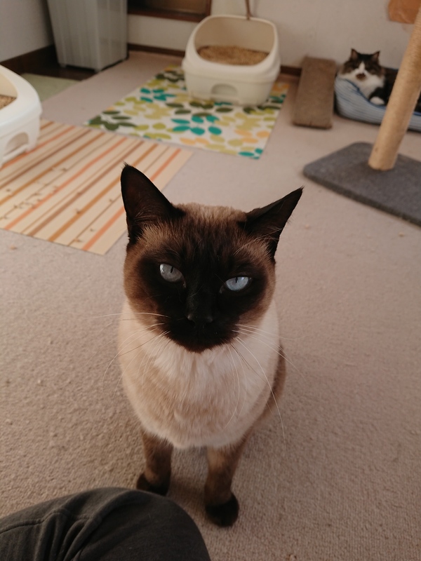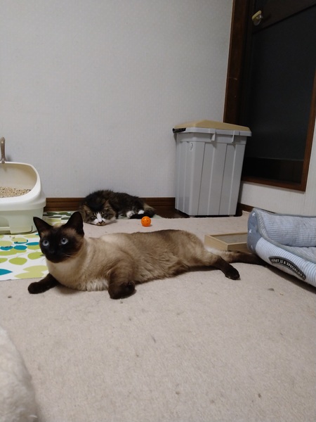 | 特徴(性格など) | シャムの雑種→男の子で女性には人懐っこい。 キジトラ雑種→男の子、かなりの人見知りで飼い主にも威嚇してくるほど。 2匹じたいの仲は良いです。 |