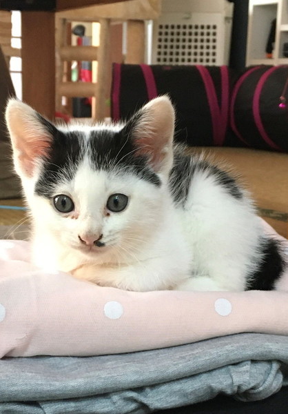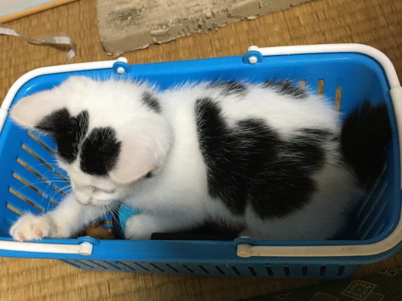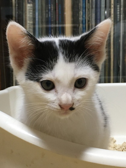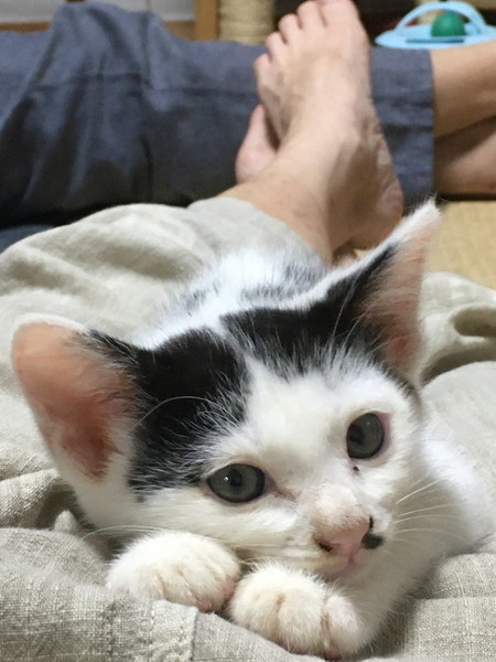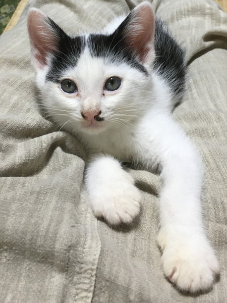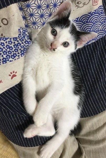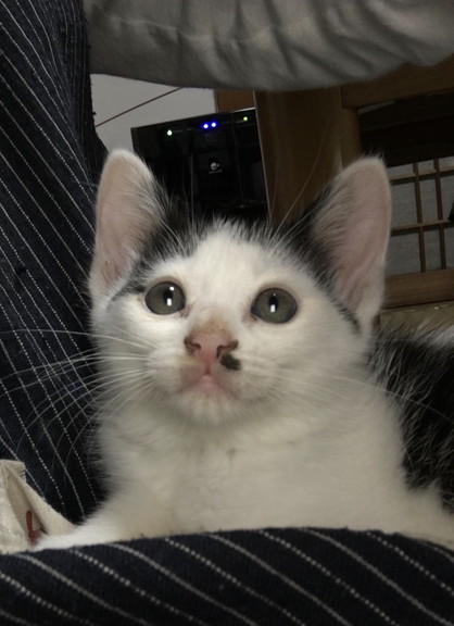 | 特徴(性格など) | お顔にちょびひげのある可愛い仔です。人が座っていると、ふいに膝に乗ってきて そのまま眠ったりします。 一緒にいる保護猫とも仲良く遊び、人にも猫にも慣れています。 コロコロした体形がゆるキャラの様に可愛いです。 |