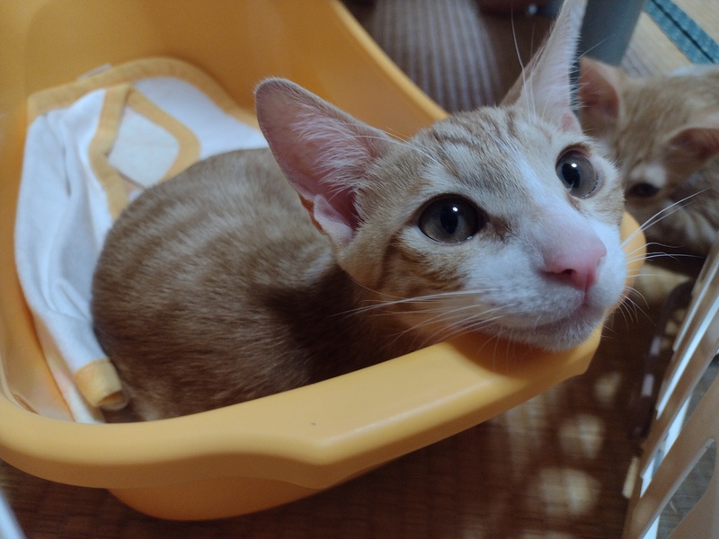 | 特徴(性格など) | 【シキ♂】1・2枚目左、3~5枚目 皆がご飯を食べている時に遊んでいたり、皆が遊んでいる時に毛づくろいしていたりしてマイペースな子です。動きも比較的のんびり。なぜかたまにおじさんっぽい格好になっています。 【チャイ♂】1・2枚目右、6~8枚目 カギしっぽの持ち主。好奇心旺盛でグイグイ行くタイプだけどちょっと寂しがり屋。新しい場所を探索する時などは大体1番に進んでいきます。よく他の子の毛づくろいをしてあげています。 ※リゼ(♀)は里親さん決定につき募集終了しました。 ------------------------------------------ ・生後2~3週頃に保護し、家族以外の人と接する機会も多かったため人慣れ抜群です。 初対面の人にでもひょいひょい寄っていきます。添い寝したり、後をついてきたりする甘えん坊です。 ・初対面の人、初めての場所でも怖がりません。 元は4兄弟なのですが、既に里親さんの元に行った兄弟は里親さんの膝に乗ったり腕枕で寝たりすぐ馴染んだそうです。この子たちも同じようにすぐ慣れると思います。 ・のほほんとしていて警戒心が薄いので、先住猫や犬がいても馴染みやすいのではないかと思います。 我が家の先住猫と対面した際、威嚇されても最初ちょっとびっくりしていた程度で、すぐ気にせず探索したり先住猫に寄って行ったりしていました。 |