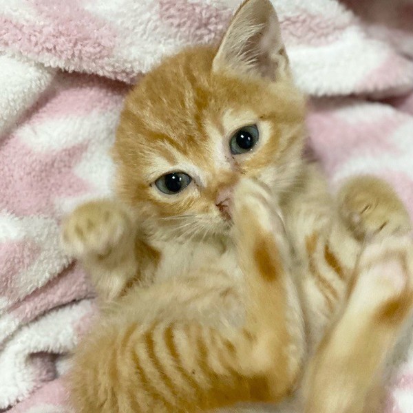 | 特徴(性格など) | もこもこ「ぶどう」くん❤ 人が大好きですぐにゴロゴロ♪お腹ころんで甘えてくれます。 現在、ドライフードを24時間の置き餌として、一日4回のパウチや離乳食を与えています。 <推定誕生日:8月始め> |