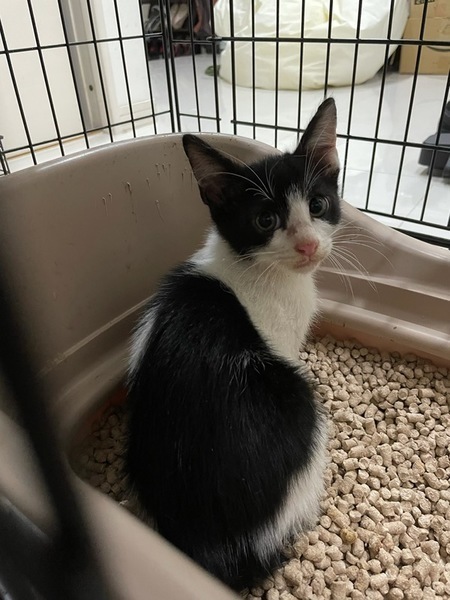 | 特徴(性格など) | 白と黒のハチワレです。人馴れトライ中。とっても可愛いつぶらな瞳です。結構ヤンチャで元気いっぱいです。 | ||