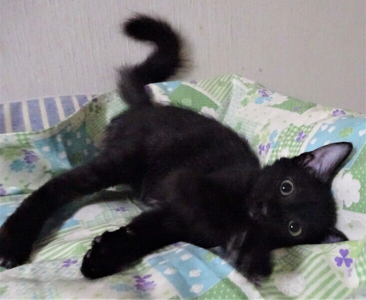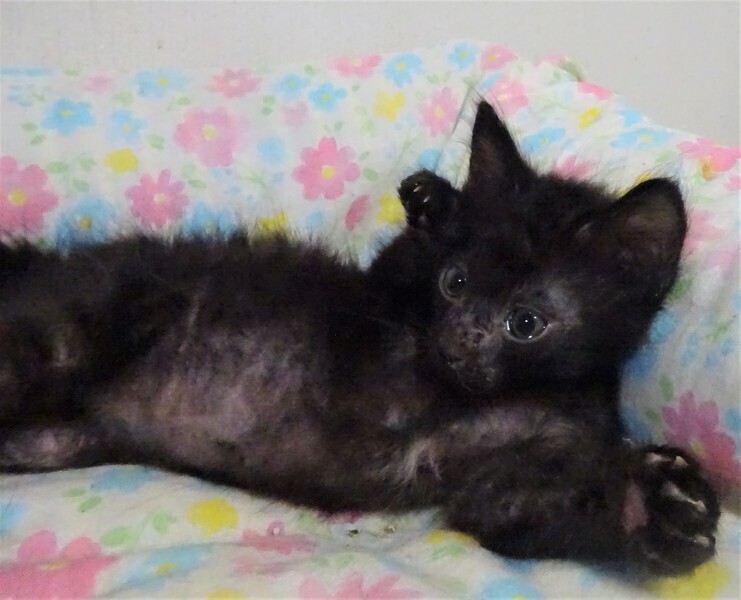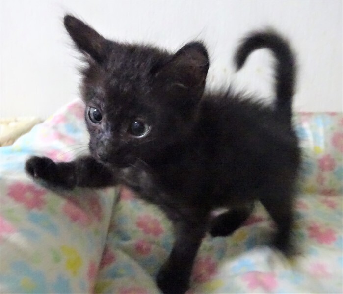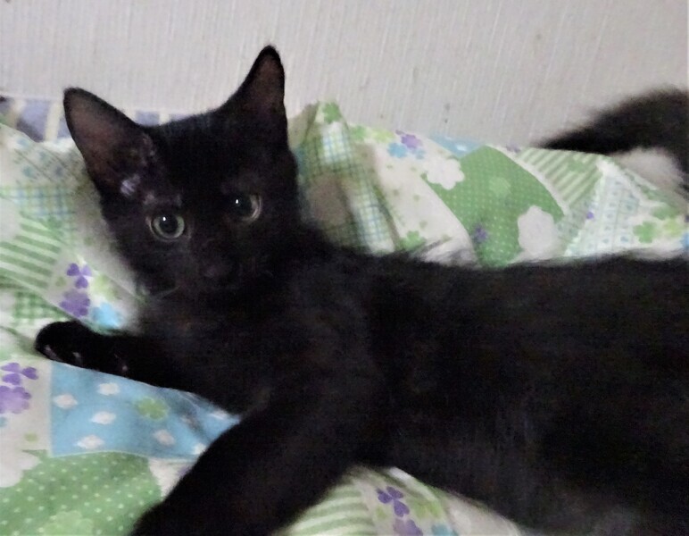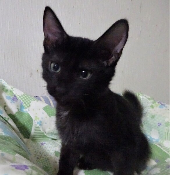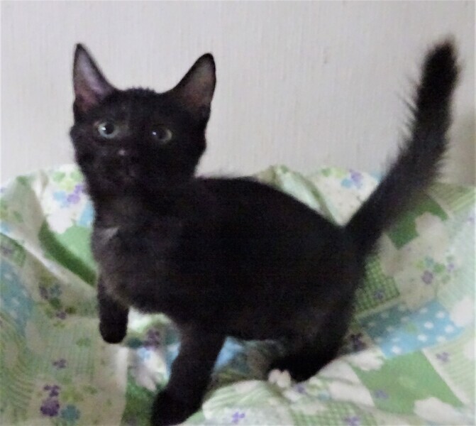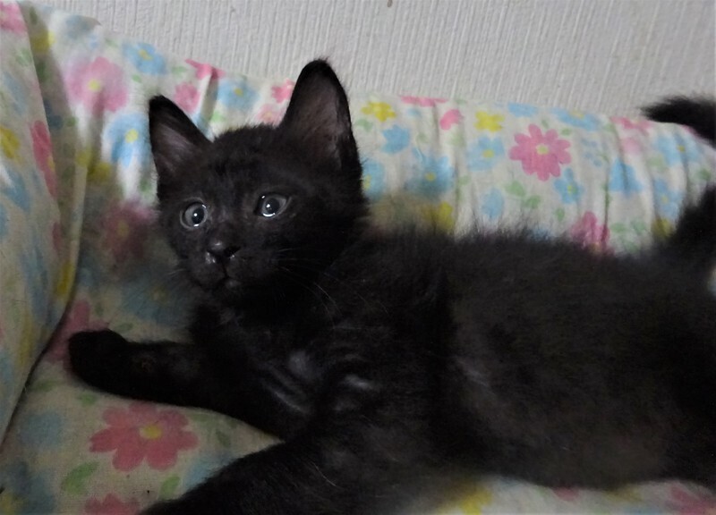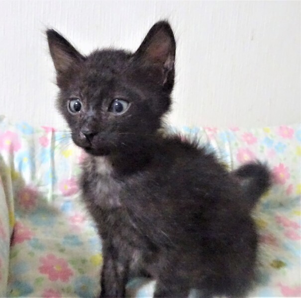 | 特徴(性格など) | 仮名: フランくん(オス) 毛色: 少し長毛のような黒猫ですが、少しだけ白い部分もあります。 性格: ミルクから育っているので、人馴れは問題ありません。他猫とは激しく遊べませんが、少しづつ遊んでいます。兄妹のペニーちゃんとはよく遊んでいます。同じ月齢の子に比べると少し小さめなので、激しい遊びについていけないようです。 兄弟のペニーちゃんと一緒のご縁があると良いですが、1匹の場合はご相談ください。 ノミ取り済 検便済 駆虫済 3種混合ワクチン済 猫エイズ・白血病ウィルス検査はともに陰性 |