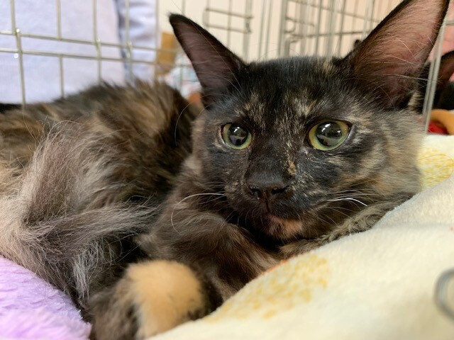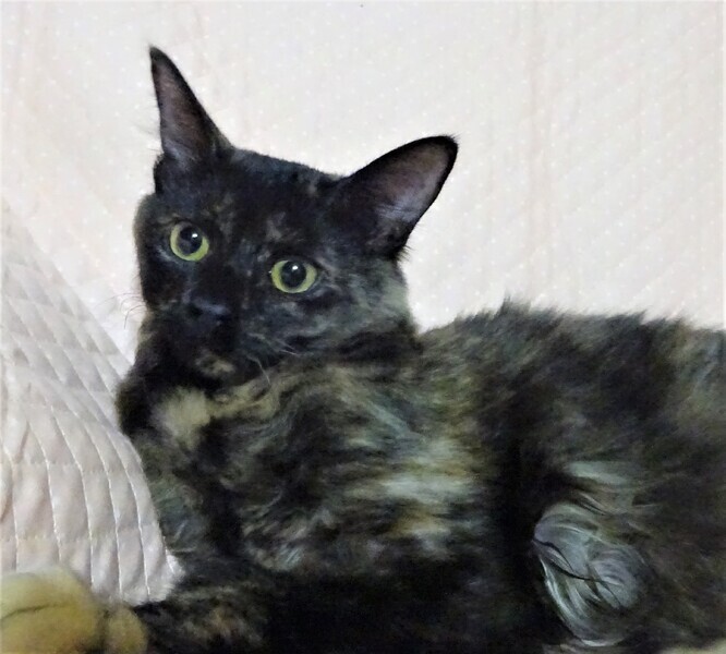 | 特徴(性格など) | 仮名: ペニーちゃん(メス) 毛色: 黒っぽいさび、尻尾長い 性格: 少し怖がりの所がありますが、ミルクから育っていますので、人には馴れています。 最近、兄妹と別々になってから、怖がり度が増したようです。 譲渡会などでは、怖がって時々威嚇するようになりましたが、守ってくれていた兄妹猫がいなくなった為と思います。 寂しがりの所もあるので、やさしい先住猫がいるところでも大丈夫と思います。 元気になってから少し大きくなり、活発になってきました。 やんちゃな面も出てきて, 爪切りや薬など嫌いな事には結構抵抗するようになりました。 綺麗な猫ちゃんに成長してきました。 ノミ取り済 検便済 駆虫済 3種混合ワクチン済 避妊手術済 猫エイズ・白血病ウィルス検査は陰性です |