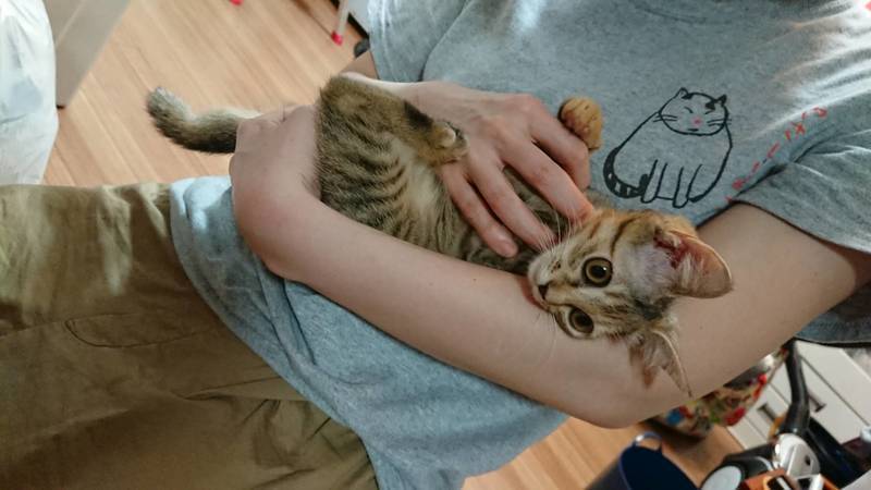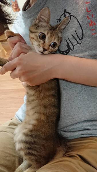 | 特徴(性格など) | ◆フラダンスちゃん ふらついても暴れん坊のキジトラ女子 ●月齢の小さな子猫は、以下の条件についてご了承の上で応募をご検討下さい。 ◆高齢者のみのご家族からの子猫のお申し込みはお断りさせて頂きます。 ◆お留守番の少ないご家庭を希望します。 ◆小さなお子様のいるご家庭は状況によりお断りする場合がございます。 ○沖縄県内で保護されました。 ○生後3ヶ月くらい(2021年9月下旬時点)のキジトラの女の子です。 ○尻尾はまっすぐです。 ○脳に障害があるようで、頭がふらふらしてしまいますが、生活に支障はありません。 ○肩に乗っかってくれます。 ○暴れん坊です。体力有り余ってます。運動神経良さそうです。 ○元気にすくすく育っています。 ○まだ小さな仔猫のため、お留守番の少ないおうちをお待ちしております。 ★ワクチン接種と不妊手術は成長と体調を見て実施予定です。 ★猫エイズ、猫白血病ともに陰性。 ○YouTubeにも動画をあげています。こちらもご覧下さい。 フラダンスその1 https://youtu.be/p4dYcNUoY_M フラダンスその2 https://youtu.be/qJVVMDzA5ZY ○10/2(土)開催の譲渡会に参加予定! 以下の要項をお読みいただき、ぜひ会いに来てください♪ ☆★☆★☆★☆★☆★☆★☆★☆★☆★☆★☆★☆★☆★☆★☆★☆★☆★☆★☆ ~10月2日(土)市ヶ尾にて譲渡会開催!~ ◎場所・・「東急ドエル市ヶ尾プラーザビル2階集会場」 神奈川県横浜市青葉区市ヶ尾町1154-2 田園都市線「市ヶ尾」駅西口より徒歩約2分 ◎日程・・10月2日(土)(雨天決行) ◎時間・・13時から16時(受付は15時30分まで) (会場に利用可能な駐車場はございません。近隣のコインパーキングをご利用ください。) *3密対策のため、当日12時30分より会場にて全時間分の整理券を配布いたします。整理券枚数には限りがございますので、上限に達した場合はご入場できません。 *参加の際は、マスクの着用、アルコール消毒のご協力をお願いいたします。 *当日は検温の上、体温が37度以上の方はご参加いただけません。 *混雑状況により、中止させていただく場合がございます。 ※参加予定の犬猫は体調により参加できない場合があります。ご了承ください。 ☆★☆★☆★☆★☆★☆★☆★☆★☆★☆★☆★☆★☆★☆★☆★☆★☆★☆★☆ |