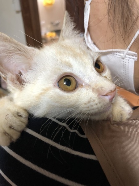 | 特徴(性格など) | ◆もちもちくん かまって欲しい茶トラ男子 ●月齢の小さな子猫は、以下の条件についてご了承の上で応募をご検討下さい。 ◆高齢者のみのご家族からの子猫のお申し込みはお断りさせて頂きます。 ◆お留守番の少ないご家庭を希望します。 ◆小さなお子様のいるご家庭は状況によりお断りする場合がございます。 ○栃木県内にて保護されました。 ○生後4か月くらい(2021年10月下旬時点)のうすい茶トラの男の子。体重は1.25kgです。 ○尻尾は先が曲がっているようです。 ○人懐っこいです。 ○かまってかまって~とくるタイプです。にゃーんにゃーんと催促してくれます。 ○抱っこも大丈夫です。 ○元気が有り余ってます。 ○元気にすくすく育っています。 ○まだ小さな仔猫のため、お留守番の少ないおうちをお待ちしております。 ★ワクチン未接種。 ★猫エイズ、猫白血病ともに陰性。 ★不妊手術は成長と体調を見て実施予定です。 ○YouTubeにも動画をあげています。こちらもご覧下さい。 https://youtu.be/NlaZuug2kiM ○10/24(日)開催の譲渡会に参加予定! 以下の要項をお読みいただき、ぜひ会いに来てください♪ ☆★☆★☆★☆★☆★☆★☆★☆★☆★☆★☆★☆★☆★☆★☆★☆★☆★☆★☆ ~10月24日(日)市ヶ尾にて譲渡会開催!~ ◎場所・・「東急ドエル市ヶ尾プラーザビル2階集会場」 神奈川県横浜市青葉区市ヶ尾町1154-2 田園都市線「市ヶ尾」駅西口より徒歩約2分 ◎日程・・10月24日(日)(雨天決行) ◎時間・・13時から16時(受付は15時30分まで) (会場に利用可能な駐車場はございません。近隣のコインパーキングをご利用ください。) *3密対策のため、当日12時30分より会場にて全時間分の整理券を配布いたします。整理券枚数には限りがございますので、上限に達した場合はご入場できません。 *参加の際は、マスクの着用、アルコール消毒のご協力をお願いいたします。 *当日は検温の上、体温が37度以上の方はご参加いただけません。 *混雑状況により、中止させていただく場合がございます。 ※参加予定の犬猫は体調により参加できない場合があります。ご了承ください。 ☆★☆★☆★☆★☆★☆★☆★☆★☆★☆★☆★☆★☆★☆★☆★☆★☆★☆★☆ |