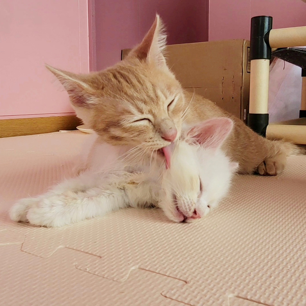 | 特徴(性格など) | 【健康状態】 よく食べ、よく遊び、元気いっぱいです♪ ブロードライン(駆虫)済み。 9/10(金) ウィルス検査済み。 エイズ・白血病ともに陰性。 ※お引き渡しの際に領収証をお渡しいたします。 領収証に記載の金額以外は一切請求いたしませんので、ご安心くださいませ。 【特徴・性格】 生後3ヶ月ぐらいの男の子です。 住宅街で身を潜めながら、兄妹2匹で身を寄せ合って生きていたようです。 野良猫さんから生まれ、過酷な環境で生きていたため、少し怖がりな慎重派さんです。 最初はかなり怖がっておりましたが、少しずつ心を開いてくれ、今では撫でられるようになりました^^ 音に敏感なため、現在は保護部屋1室のみに慣れ、安心して過ごしている状況です。 (他の部屋にも怖がらずに自由に行き来できるよう、少しずつ慣らしております) 同じ部屋に人がいると少しおすまししていますが、部屋を出て見守りカメラで見ていると、他の子達と一緒に暴れまわっています^^ お外での怖かった記憶が少しずつ薄れ、本来の伸び伸びとした性格が出てくると、とてもやんちゃ君になりそうです♪ 兄妹猫の三毛ちゃんととても仲良しなのですが、他の猫ちゃんも大好きなようです。 他の保護猫ちゃんもいるのですが、いつも自分より小さい子達のお世話をしてくれてとても助かっています♡ 優しい性格をしているので、噛んだり、爪を立てることもありません。 初めて猫ちゃんを迎えられるご家庭でも安心して迎えていただけると思います^^ 兄妹でとても仲良しなので、2匹一緒に迎えてくださる方がいらっしゃいましたら大歓迎です。 |