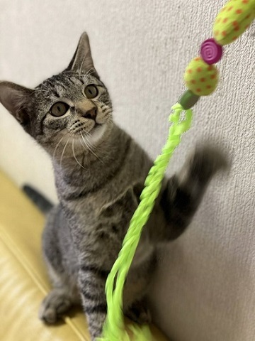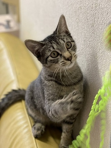 | 特徴(性格など) | 人懐っこいく甘えん坊 抱っこ好きです 健康状態も良く、よく遊び、よく食べ、おトイレもバッチリです。 兄妹が貰われて一人ぼっちになり、寂しくて猫語で人間に話しかけてきます。 11月に去勢手術を予定しています。 |
