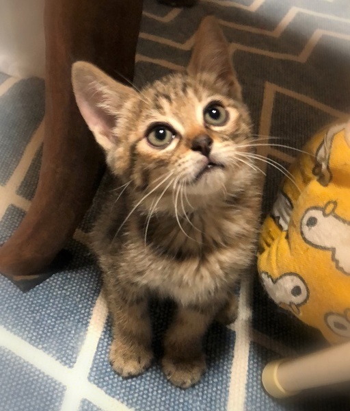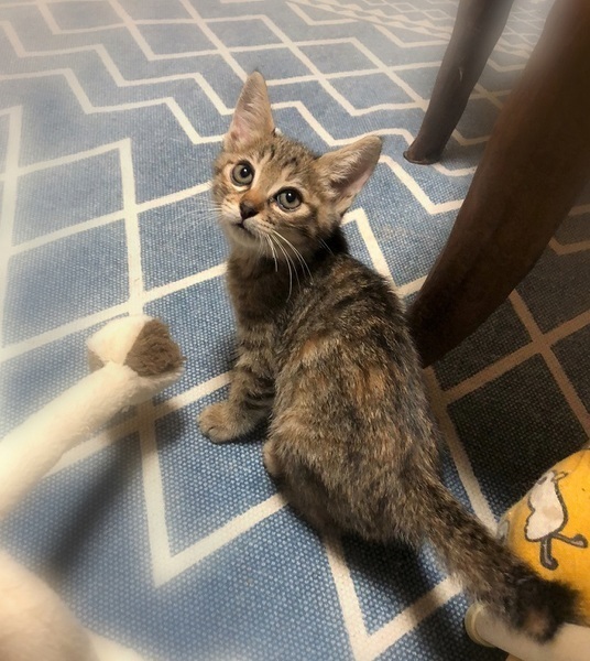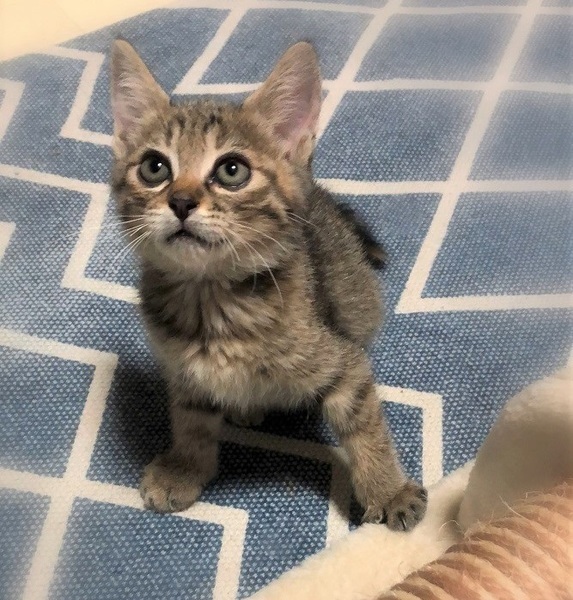 | 特徴(性格など) | 現在月齢1.5ヶ月と少し・まん丸・きじ+サビ柄の女の子 遊び好きで、人も大好きな甘えん坊 どんな物を見てもわくわくいつも楽しそうに遊びます。 てけてけ走っている時、ひょいと急に抱っこしてもゴロゴロご機嫌・座って作業していると、膝に飛び込んで来ます。 ☆長毛女の子「まじー」と兄妹です。 |