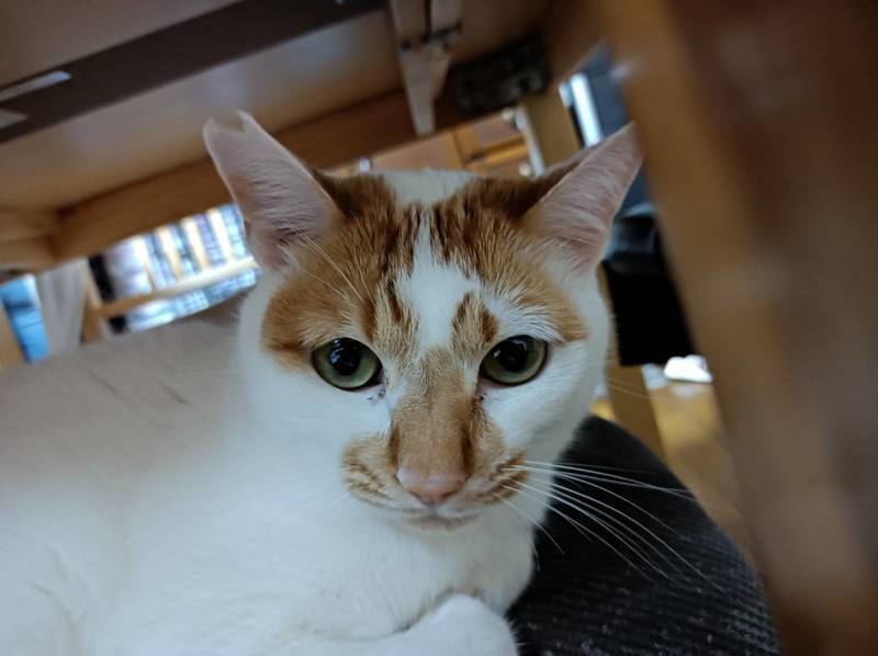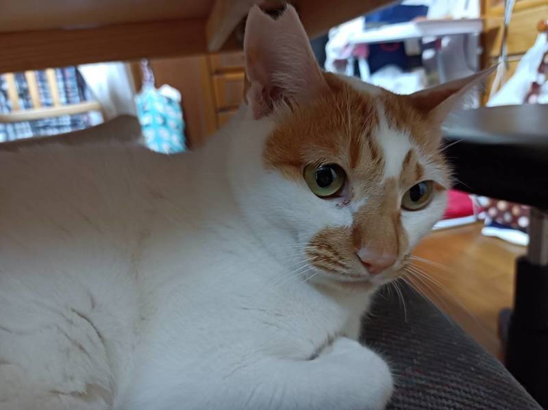 | 特徴(性格など) | 白の範囲が多い茶色が混ざった大福餅っぽい(福助)です。 膝の上が大好きで、自分の気が済むまでペロペロ舐めて甘えたボーイです。 小さい子がいるのですが、どんなに乱暴にされても爪を出さなくてお利口さんです。性格もとても温厚です。 |