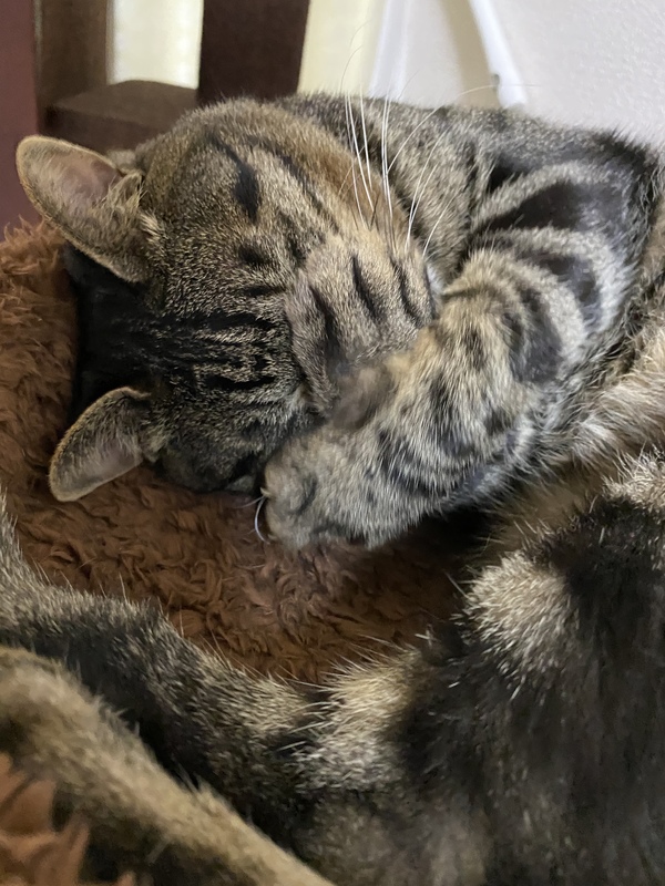 | 特徴(性格など) | キジトラのボブテイルです。 とても人懐っこくよく遊びはじめて会う人にもゴロゴロします。 健康です。一度歯の治療を受けた事がありますが、予防接種以外に病院にかかったことはありません。 |