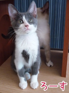 | 特徴(性格など) | 仮名を『ろーす』と言います。 保健所に収容されました。 綺麗なグレーの毛皮と、まん丸お顔とお尻が可愛いあざとい系女仔です。 膝に乗り、じーっと見つめて、お客さん全てに連れて帰りたいと言わせた悪い仔(笑)です。 更に慣れるとご飯食べさせて!抱っこして!と、ワガママ言う様になり、もうしもべはメロメロ...可愛いです。 トイレとお風呂には着いてきます。 人馴れ猫慣れバッチリです。 ご飯は缶詰より、今のところササミとカリカリが好みのようです。 マイブームなのか(汗)充電器をガジガジするのだけ気をつけて下さいね。 【医療処置情報】これから実施のも含まれます *健康チェック *3種混合ワクチン接種 (年1回定期的にしております。詳細はお見合い時にお知らせいたします) *ウイルス検査実施(FIV.FeLV共に陰性) *検便実施 *駆虫薬投与(レボリューション、ドロンタール) *マイクロチップ装着 *不妊・去勢手術 |