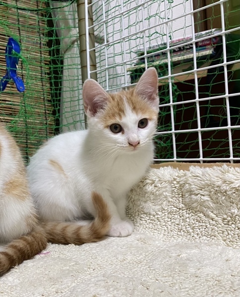| 特徴(性格など) | お顔と茶白、しっぽ茶トラ、カラダは白くて少し茶あり おとなしく、人懐っこい 撫でるとゴロゴロします |
